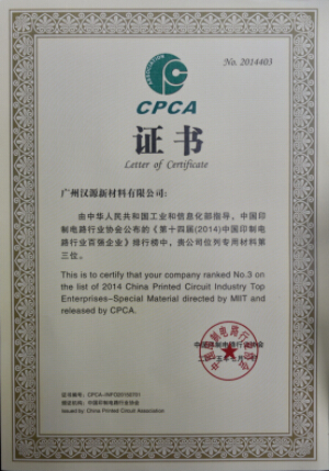 汉源新材料荣获“2015年(首届)中国电子材料行业50强企业”称号